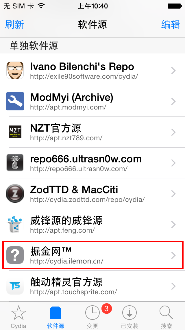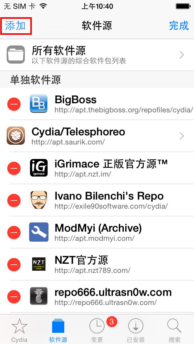 越狱后的朋友遇到的第一个问题应该就是如何添加源,有了源我们才有很多必备的插件可以安装。